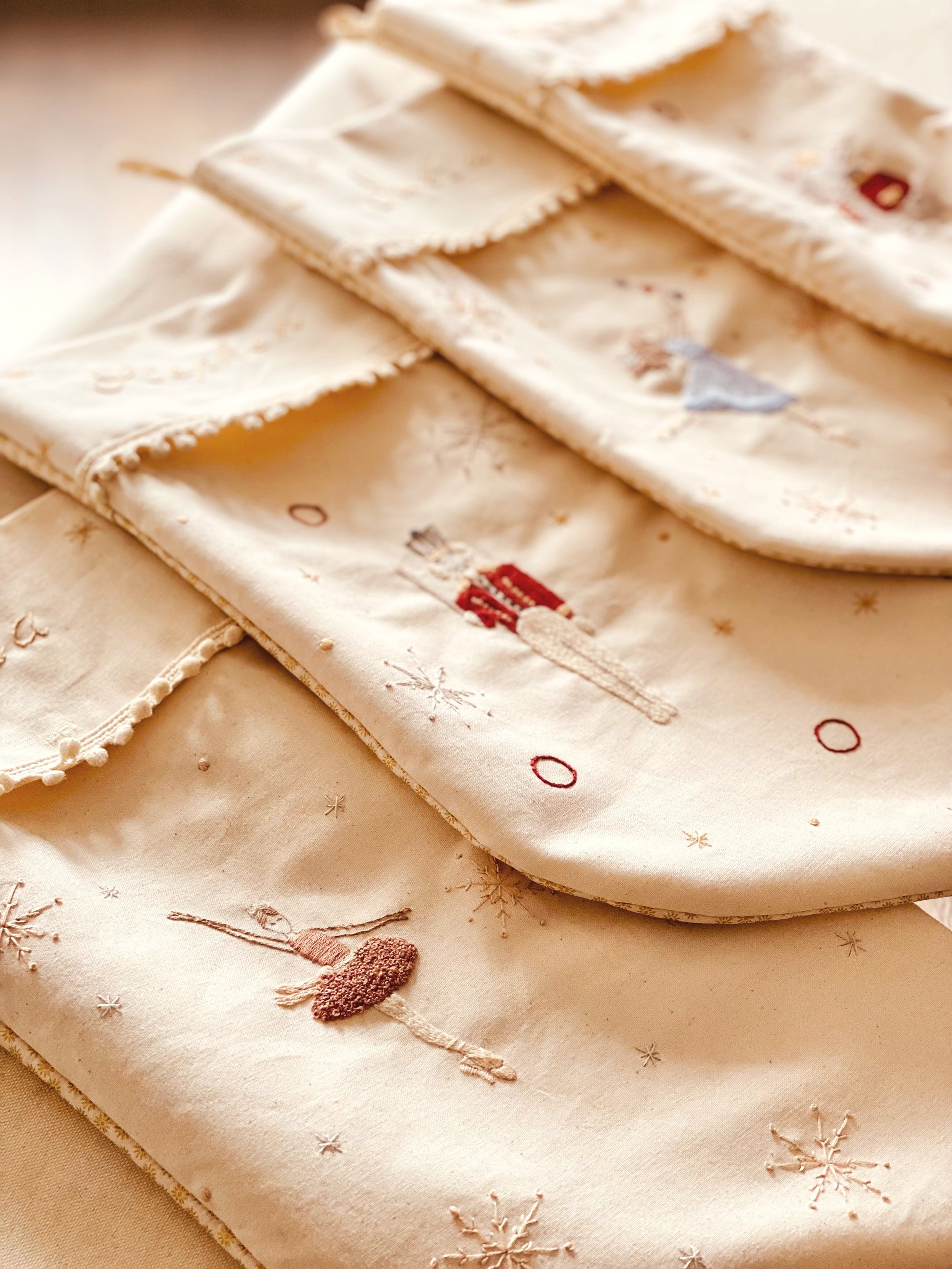 Featuring a soft gentle pastel palette with a few bright accents to add a little holiday fun. The 12 designs can be made into 12 Christmas ornaments or left as one piece for a wall-hanging.